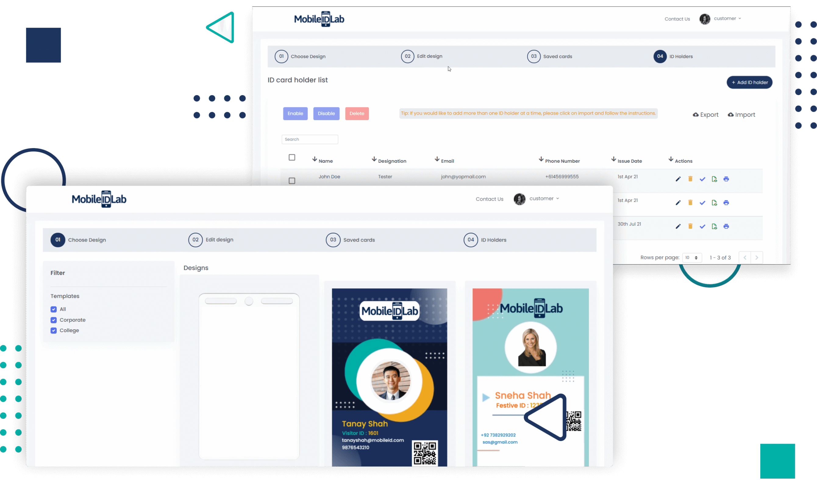 Create a Digital ID card solution for your organisation in 3-steps with our Mobile ID Lab platform.